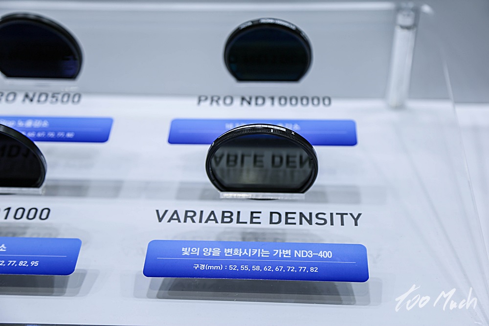 그리고, 다양한 필터류 및 악세서리들도 전시가 되고 있었는데, 가변식 ND 필터가 너무나도 신기했다. 편광필터처럼 필터를 돌리면 가변식으로 ND 3 부터 ND 400 까지 사용할 수 있어서 꽤나 유용하게 사용될 것 같다.