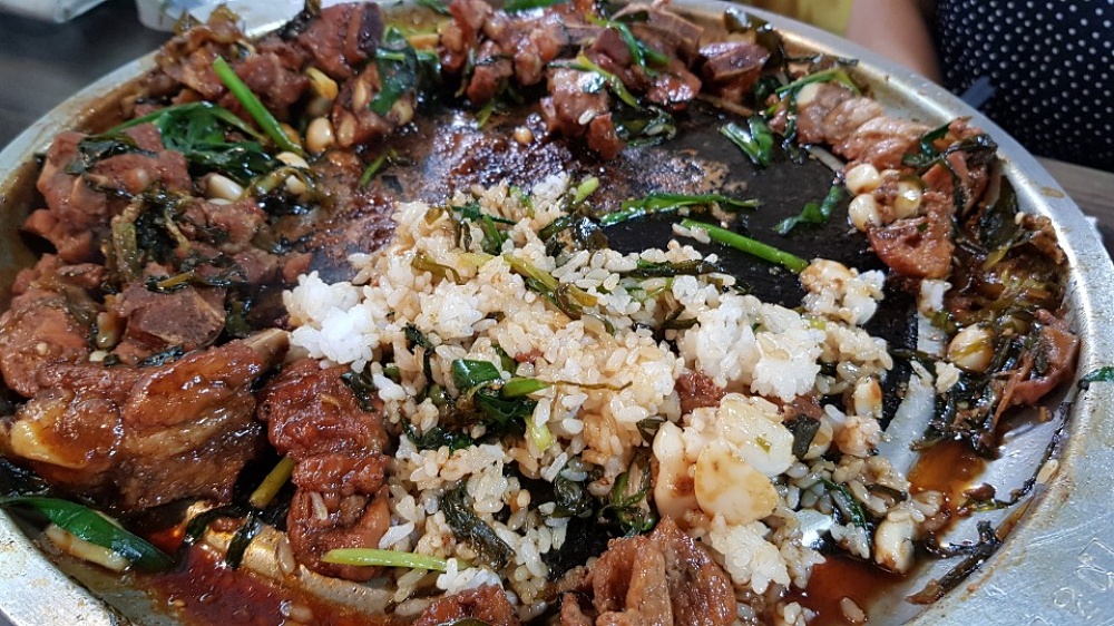 아까 고기를 한번에 다 붓지 말라고 한 이유가 바로 이것이다. 고기를 먼저 쌈을 싸서 먹다가 남은 국물에 밥을 슥싹슥싹 비벼서, 볶아서 먹으면 그게 또 꿀맛인지라, 배터지게 고기를 먹고서도 밥을 뚝딱! 해치우게 된다.