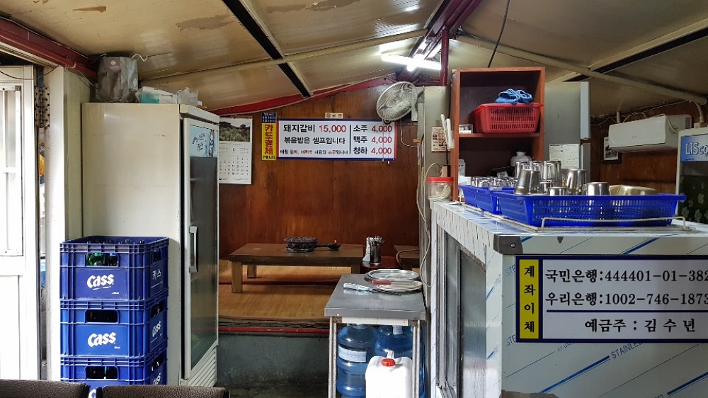 허름한 느낌이다. 그런데, 여기 물갈비가 특별한 이유가 좀 있다. 그리고 전에는 에어컨이 없었지만, 이제는 에어컨이 있으니 너무 걱정하지 않아도 된다고 한다.
