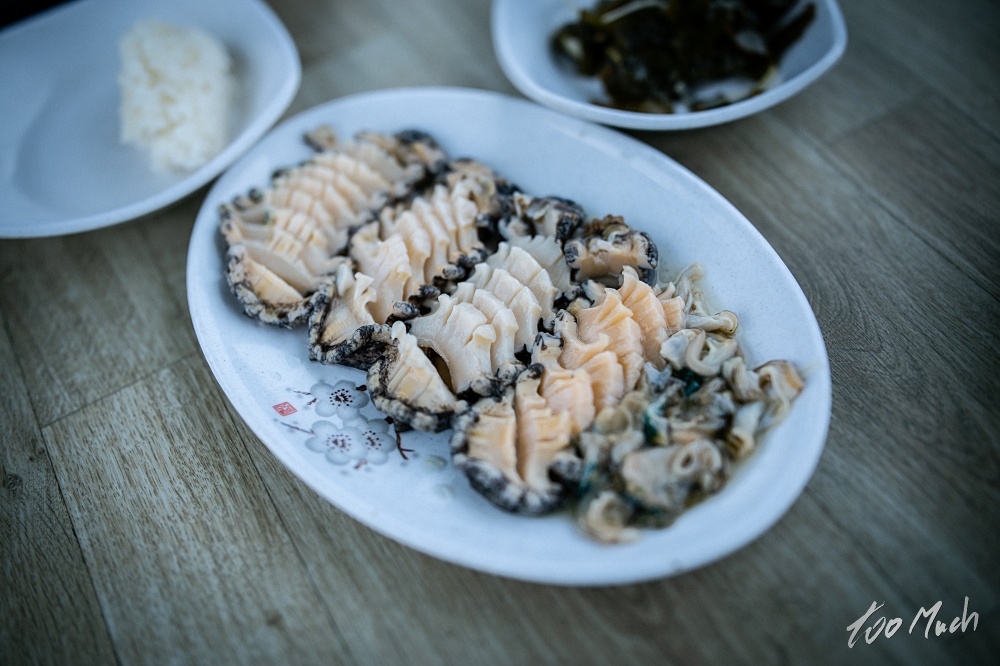 우리는 전복과 물회(성게 + 해삼 + 소라)를 시켰고, 전복죽도 함께 시켰다. 와이프가 전복죽을 좋아하고, 전복회를 좋아한다. 이상하게 익힌 전복은 별로 좋아하지 않는 편이다. 반면, 나는 가리는 것 없이 다 잘 먹으며, 회를 좋아한다.