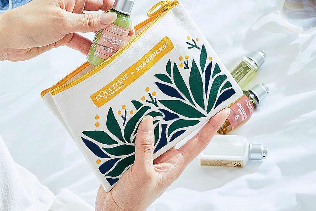 스타벅스(Starbucks) 에서 레디백 다음으로 새로운 콜라보레이션을 출시했다. 바로, 코스메틱 브랜드 '록시땅(L'Occitanne en Provence)'와 콜라보레이션을 진행한 것인데, '리프레쉬 유어 데이 키트' 로 록시땅의 베스트셀러 제품인 버베나 샤워젤, 버베나 바디로션, 인텐시브 리페어 샴푸, 인텐시브 리페어 컨디셔너 4종이 여행용 제품으로 들어가 있는 트로피컬 패턴의 파우치다.