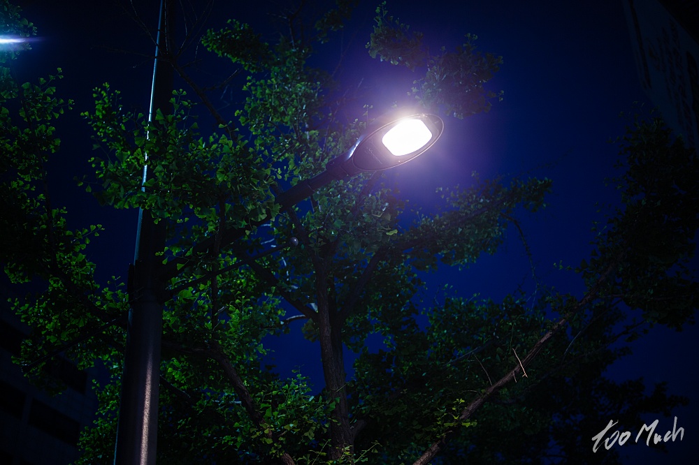 야간에서 광원을 마주하고 찍을 때, 약간의 빛번짐은 있지만, 야간에 사용하기에도 훌륭하다. 어두운 곳의 계조까지도 잘 살려주는 동시에, 화이트홀의 억제력은 상당하다.
