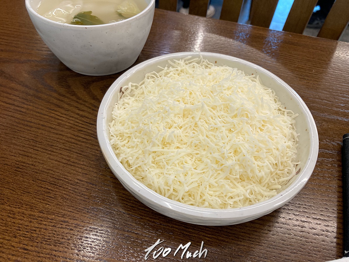 닭갈비가 다 익으면, 그 위에 눈꽃치즈를 살포시 뿌려준다. 치즈의 고소한 맛을 좋아한다면, 치즈를 추가하길 권장한다.