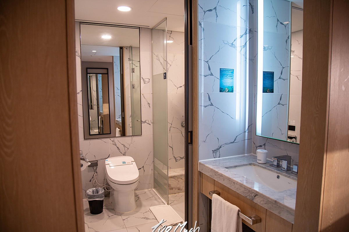 객실은 바로 바다가 보이는 곳은 아니었다. 업무상 하루 자고 가면 되는 곳이기에 뷰는 크게 신경쓰지 않았지만, 오션뷰였다면 아침에 일어날 때의 감동이 더욱 좋았을 것 같단 아쉬움이 남긴 했었다. 디럭스 트윈 부분오션으로 숙박을 했는데, 요즘 호텔에는 어매니티가 없어 슬리퍼가 없었다. 그렇다고 객실 바닥이 매끄럽게 물청소가 된 것은 아니었기에 슬리퍼를 미리 준비하면 좋긴 하다.