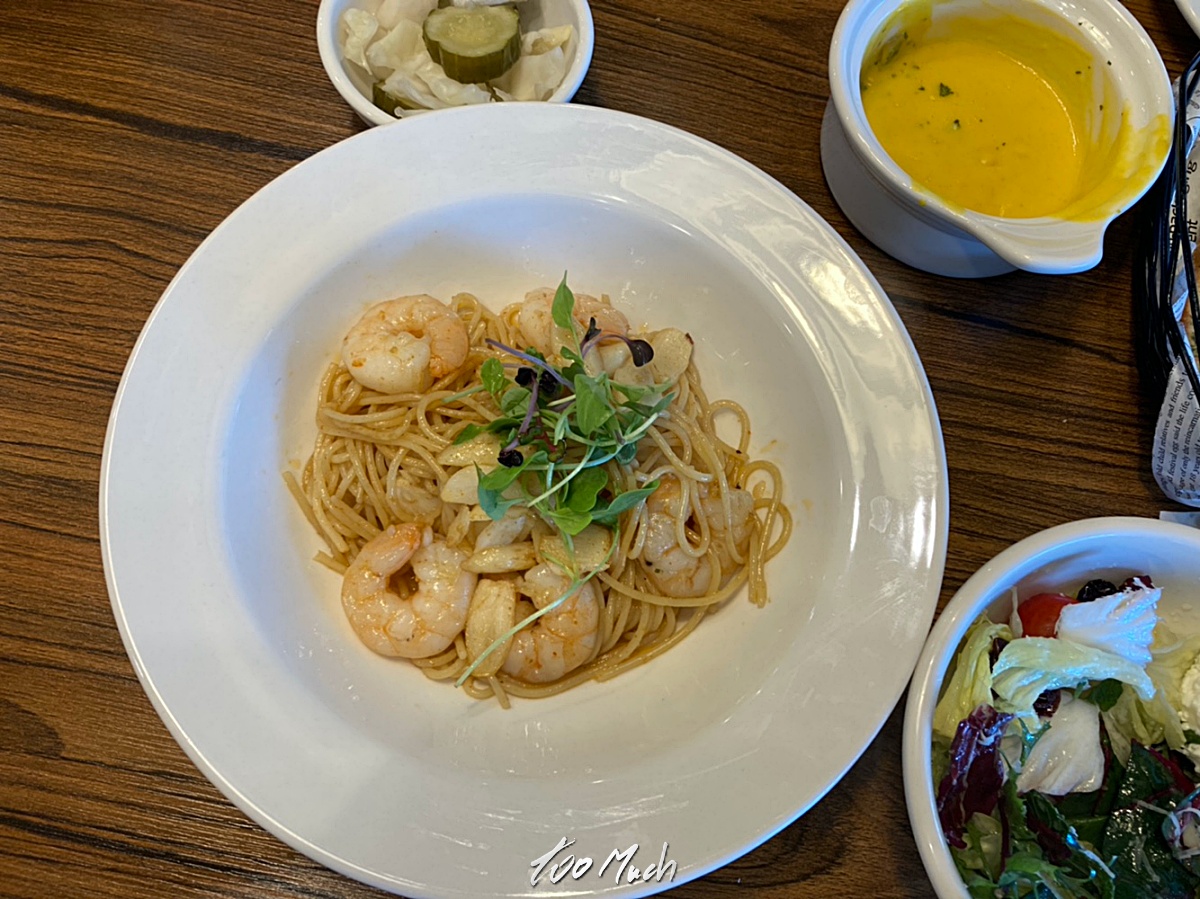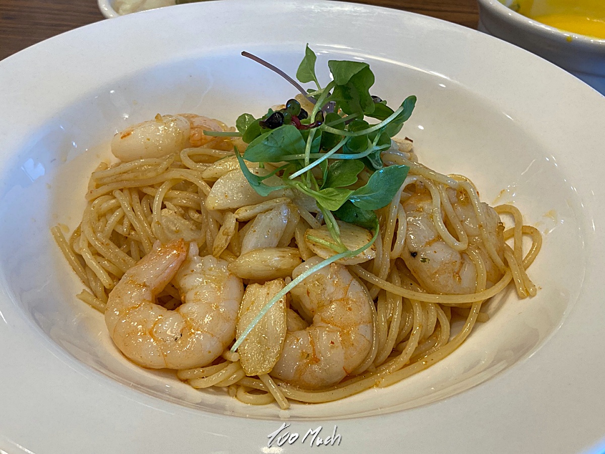 주문은 감바스 알리오 올리오와 게사 새우 로제 파스타 두가지를 주문했다. 마늘의 알싸함이 느껴지는 매콤한 스페인풍 새우 오일파스타인 감바스 알리로 올리오는 성인 남성이 먹기에도 양이 딱 적당했으며, 일단 면의 익는 정도가 아주 딱 좋았다. 알단테보다는 살짝 부드러우면서 적당히 식감이 살아있었고, 무엇보다 면이 얇아 매콤한 오일이 풍미를 더해주게 된다.