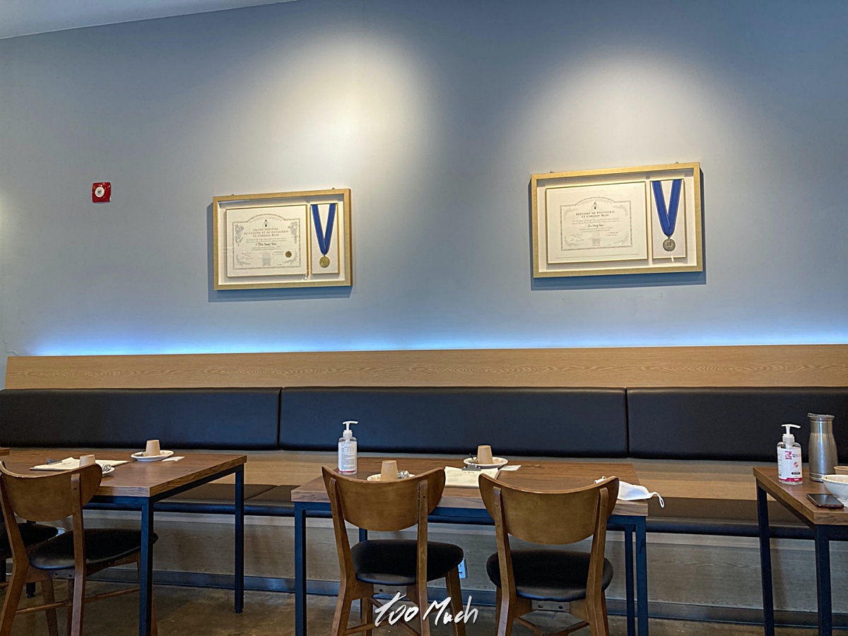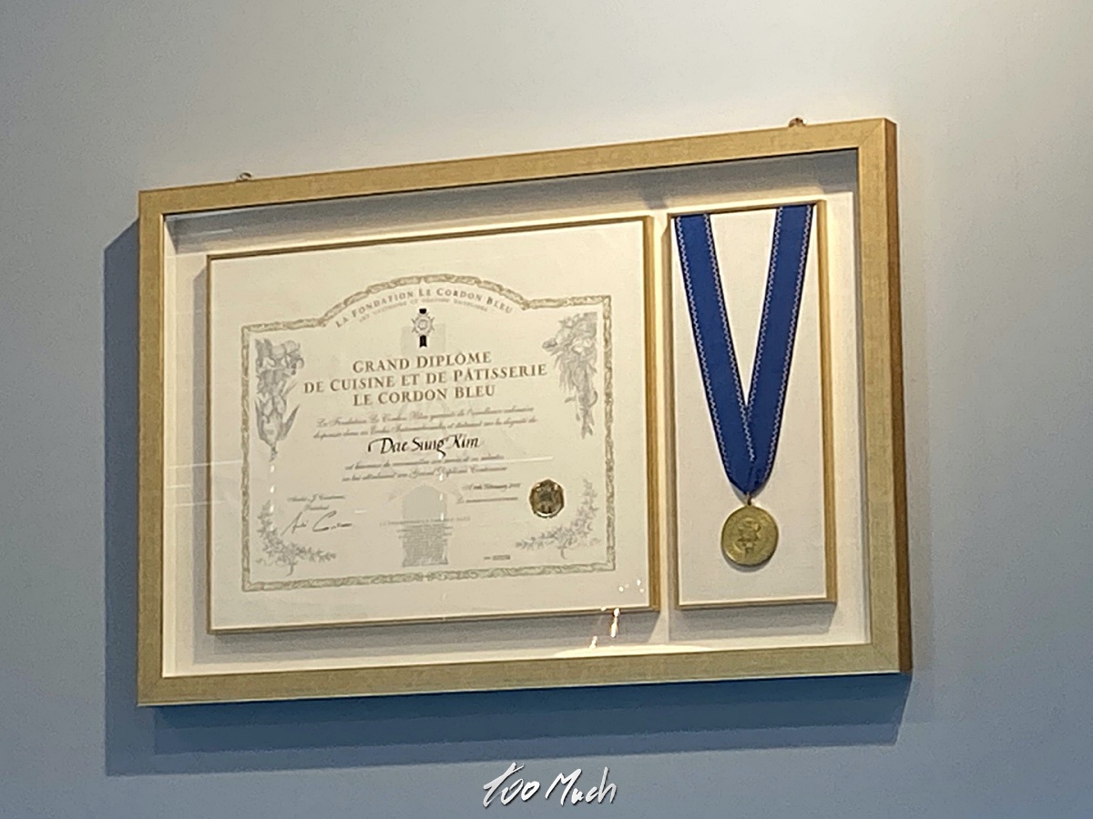 깔끔한 식당 벽 한켠에 붙어있는게 뭔가 봤더니, 르 꼬르동 블루 출신임을 밝히는 증서였다. 르 꼬르동 블루는 세계 3대 요리학교로, 이곳에서 수료를 했다는 것은 기본적으로 요리의 맛에 대해 큰 걱정을 할 필요가 없다는 것을 말하기도 한다. 르 꼬르동 블루(Le Cordon Blue) 는 프랑스의 요리 학교로, 1895년에 파리에서 설립된 역사 깊은 요리학교다. 한국에는 숙명여대에 한국 분교를 두고 아카데미를 운영하고 있다. 잠깐 르 꼬르동 이야기를 해보자면, 르 꼬르동 블루'라는 이름은 "푸른 수장(綏章)"이라는 뜻이다. 프랑스의 왕 앙리 3세가 프랑스의 가장 중요한 기사단 중 하나로 꼽히는 "성령의 기사단"을 결성한 16세기 이래로 최고의 만찬을 의미하는 이름으로 처음 사용되었다. 기사단의 화려하고 성대한 의식과 최고의 만찬으로 인해 르 꼬르동 블루라는 이름이 점차 널리 알려지게 되었으며 1895년 르 꼬르동 블루는 저널리스트 겸 출판업자인 마써 디스텔에 의해 파리에서 설립되었다. 1896년 1월 14일 르 꼬르동 블루 잡지와 요리 학교를 홍보하기 위해 전기 스토브를 이용한 첫 요리 시연 강의를 선보이게 되었고, 이 후로 르 꼬르동 블루는 국제적인 명성을 쌓기 시작했다.