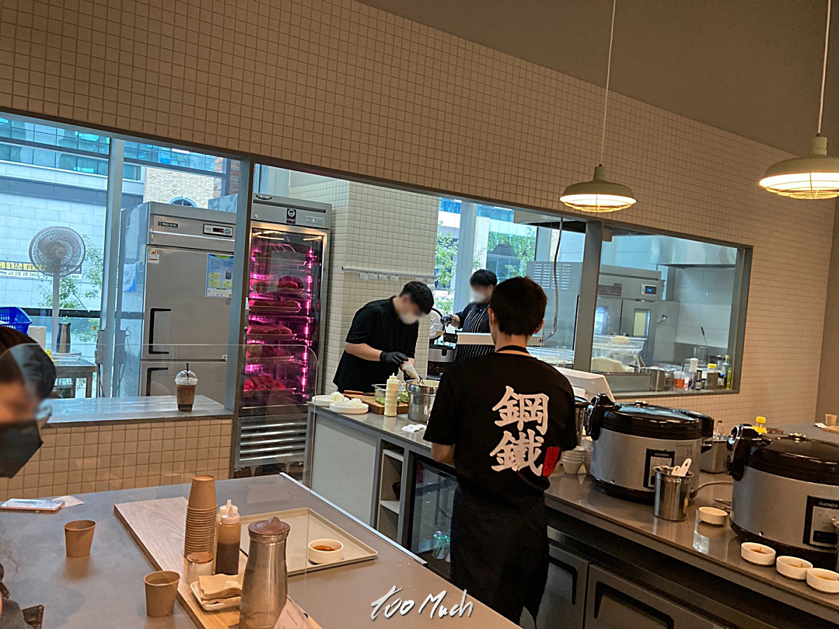 매장은 정말 깔끔하다. 가운데에 주방이 오픈되어 있으며, 한켠에는 고기를 숙성시키는 곳이 있고 밥통과 국 등이 따로 있다.