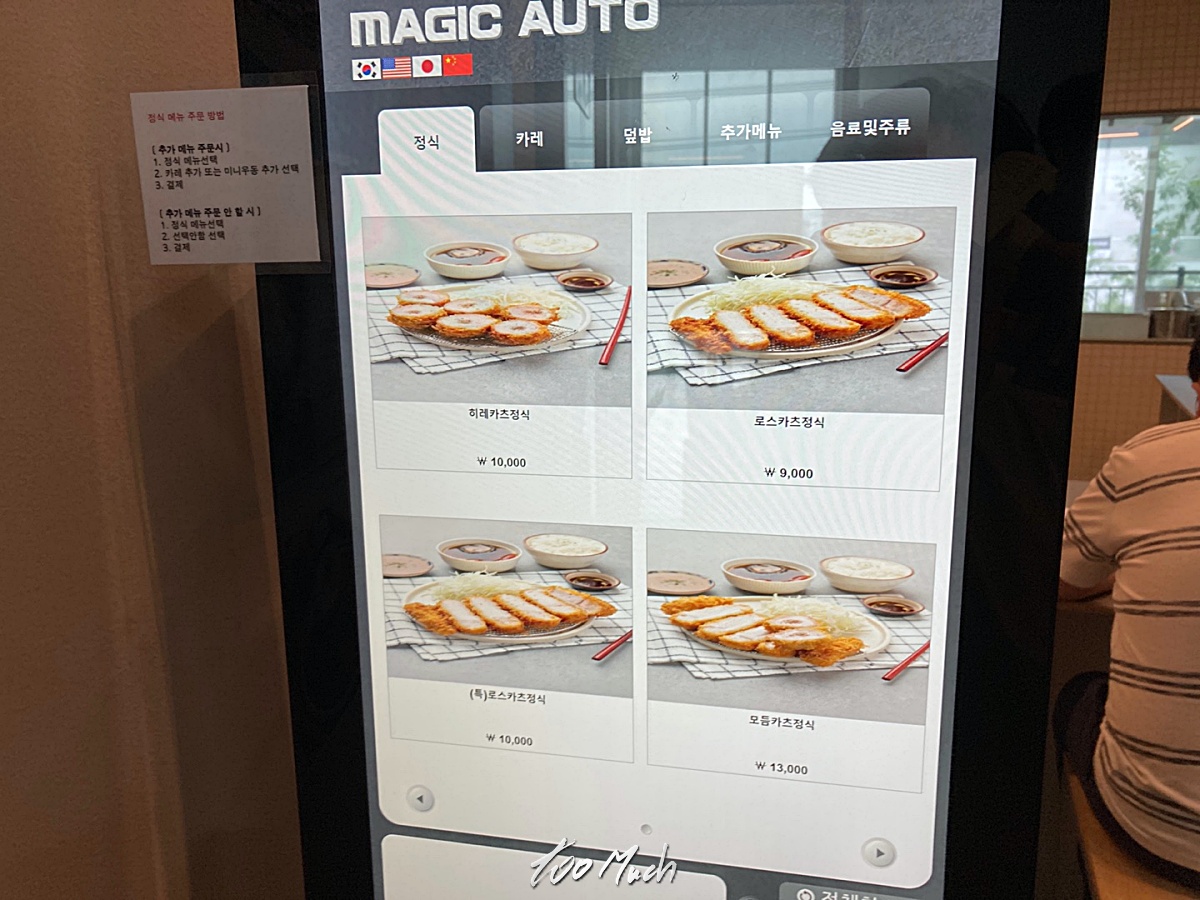 주문은 이렇게 실프 키오스크를 통해 결제까지 하게 된다. 이게 참 편한게, 자신이 메뉴 잘못 골라놓고 매장에서 싸울 필요가 없는 시스템이라, 요즘에는 이런 무인 키오스크를 많이 사용하게 된다. 하지만, 연세가 있으신 분들은 여전히 이 시스템이 불편하신 것 같다. 점심 메뉴로는 와이프가 히레카츠(안심 돈까스), 나는 로스카츠(등심 돈까스) 를 선택했다. 이 외에도 모듬카츠도 있고, 미니우동이 들어간 메뉴 등이 있으니 이 점을 참고해서 주문하면 된다.