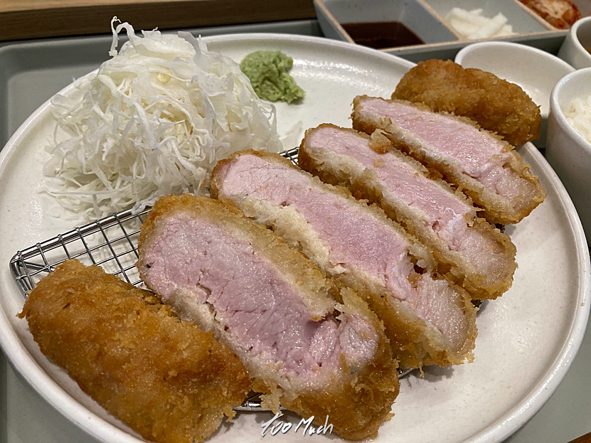이어서 로스카츠(등심 돈까스) 가 나오는데, 로스카츠의 특징은 두툼~한 비계가 그대로 담겨 나온다는 것이다. 비계맛을 싫어하는 사람도 있겠지만, 이 두툼한 지방층이 고소한 맛을 더해주기 때문에 개인적으로는 로스카츠를 즐기는 편이다. 물론, 와이프와 나눠먹으면 되니 굳이 모듬을 시킬 이유도 없다.