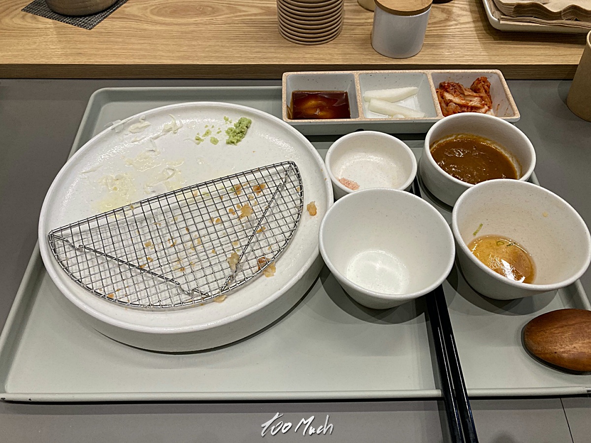 미오글로빈 현상이란, 신선한 생 돼지고기로 요리할 때 볼 수 있는 현상인데, 조리시 가해지는 열로 인해 고기의 마이글로빈 성분이 미트마이글로빈 성분으로 바뀌면서 붉은색을 띄게 되는건데, 덜 익은게 아니라 원래 색이 이런 것이니깐 어색해하지 않았으면 좋겠다. 아참, 흥도식당은 숙성돼지고기를 사용하는데, 드라이에이징과 참지숙성, 염지숙성 이렇게 3가지를 사용하고 있다고 한다.