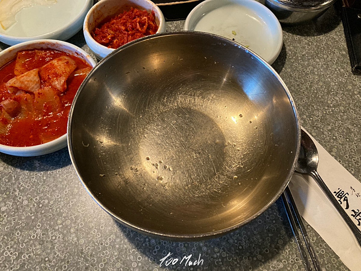 하지만, 딱히 그럴 필요는 없었다. 지금 사진에서 보이는 딱 저정도와 함께, 고기에 붙은 근막을 따로 구워도 양이 한참 나온다. 여기에 냉면과 찌개까지 먹으니 배가 상당히 차게 된다.