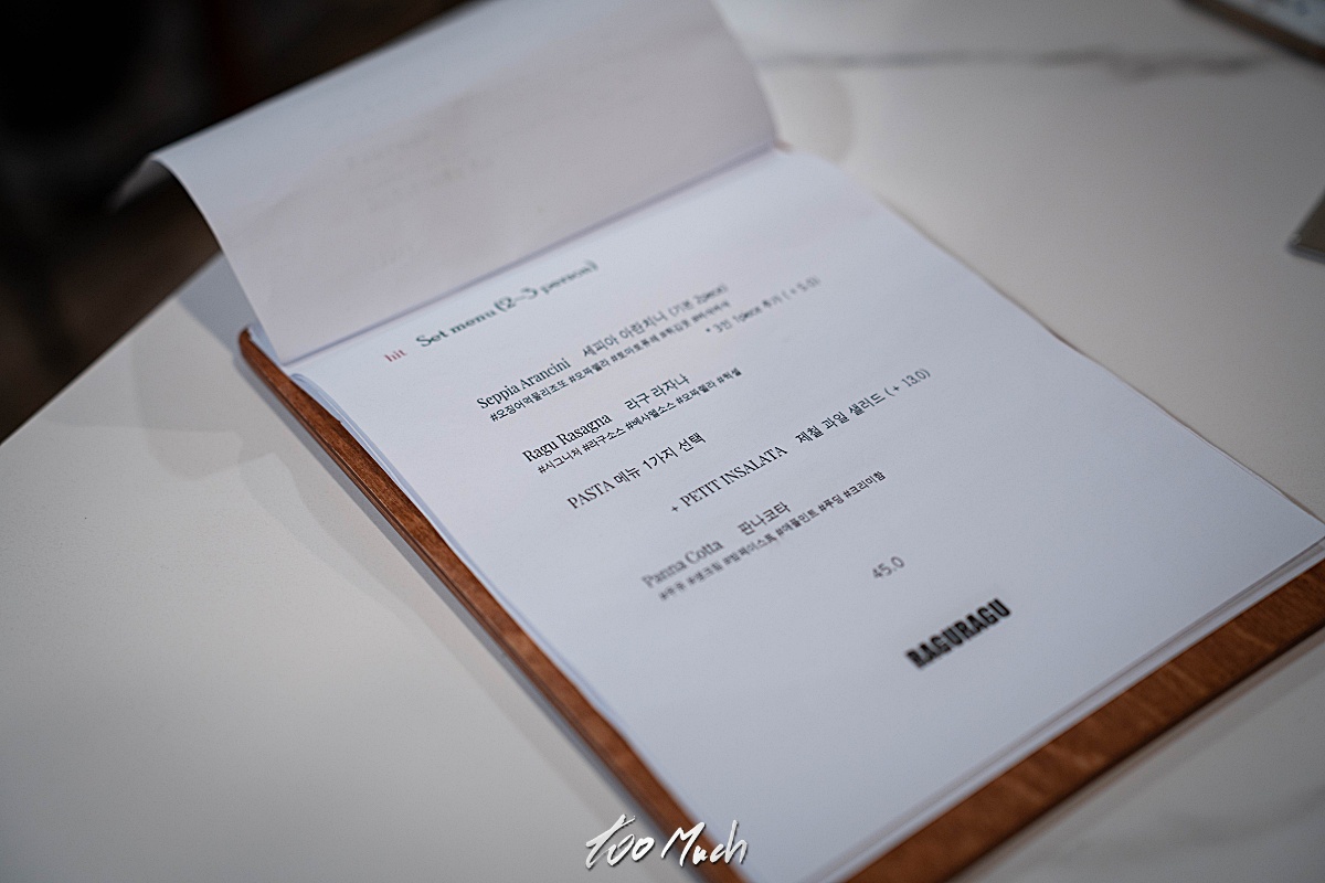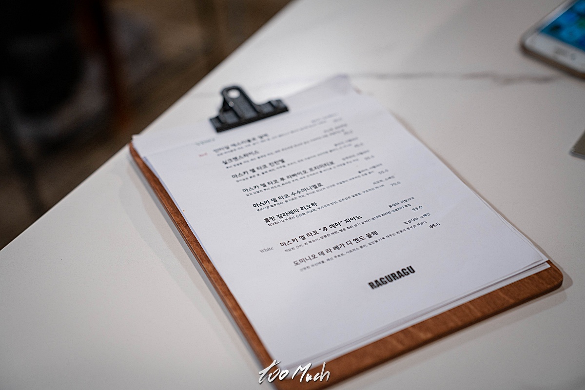 결혼기념일을 맞이해 집 근처 괜찮은 곳을 찾아보다 이탈리안 퀴진을 선보이는 곳을 찾았다. 르 꼬르동 블루 출신의 1인 쉐프가 운영하는 '라구라구(RAGU RAGU)는, 분위기 좋은 이태리 레스토랑으로, 예약으로만 운영된다. 가격 역시 괜찮은 편인데, 맛을 보고 나면 가격이 상당히 저렴하다고 느껴진다. 미리 말하자면, 웬만한 호텔에서 먹는 것보다 더 맛있었다.