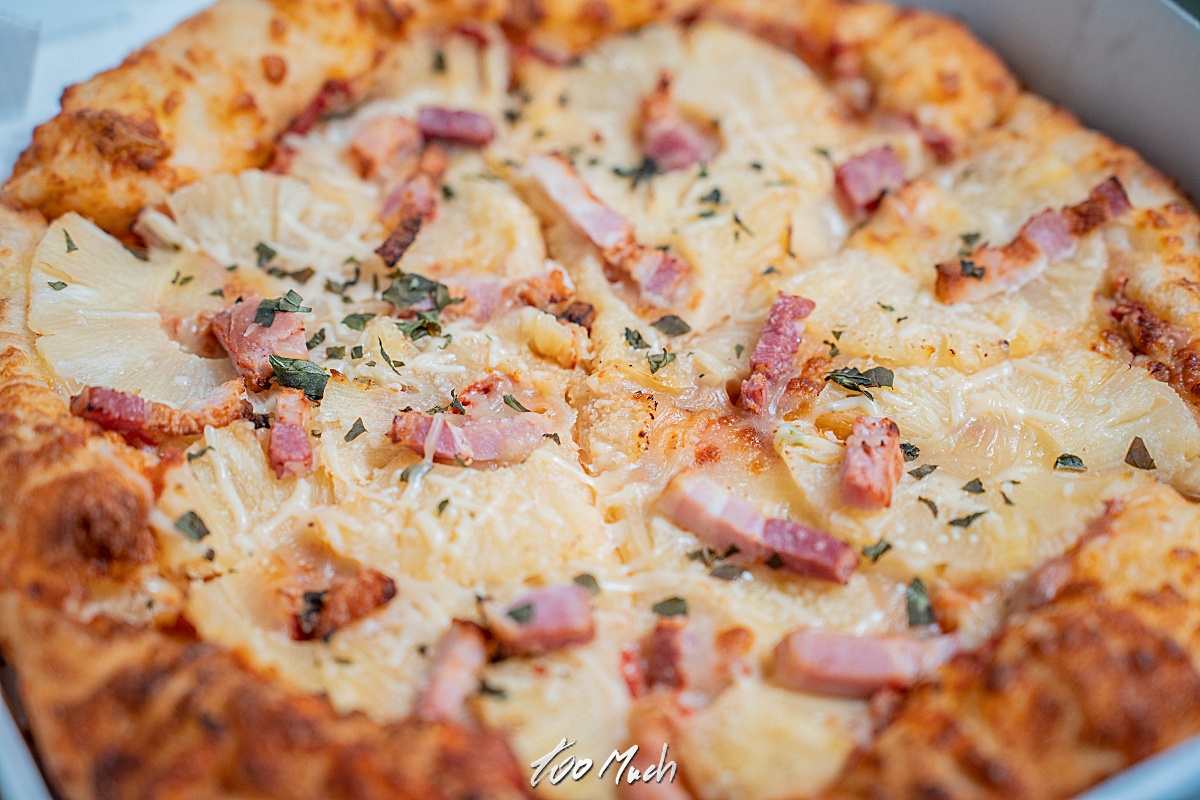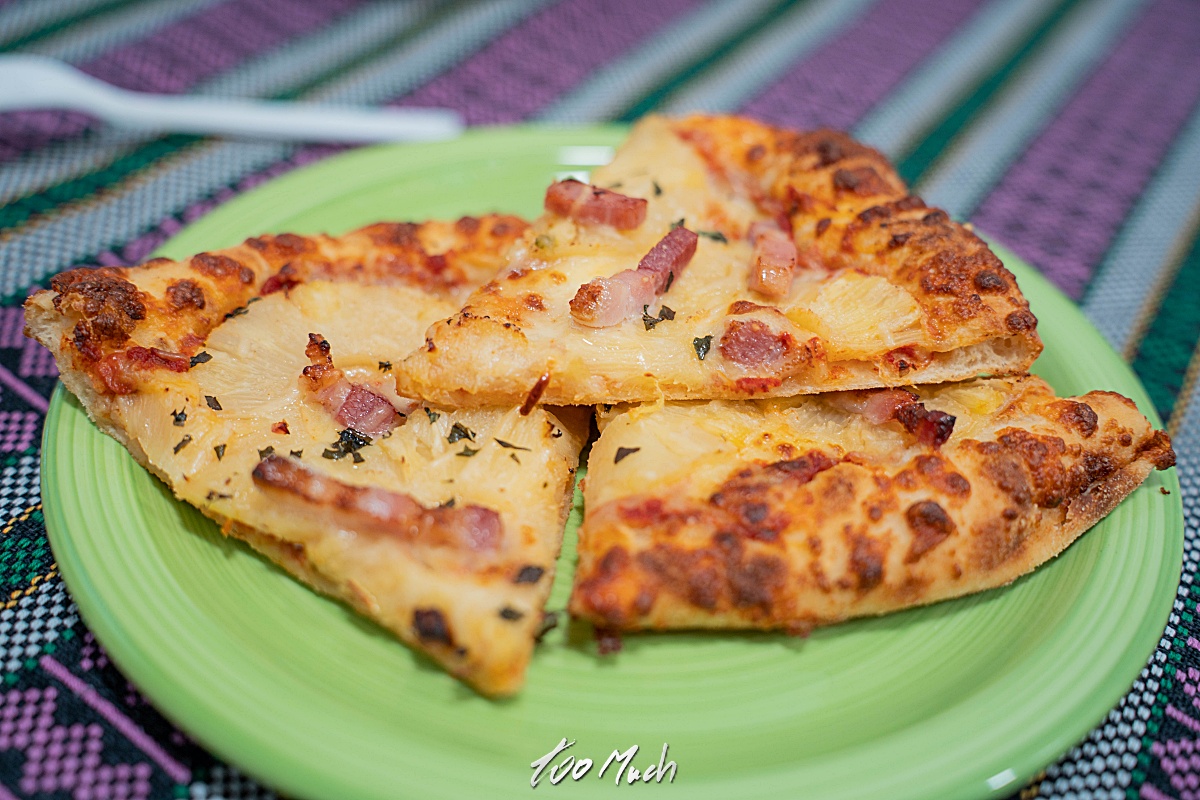 파인애플 듬뿍 들어간 하와이안 피자! 호불호가 있겠지만, 꽤 맛있다. 피자 도우와 토핑이 막 분리되는 그런 피자도 아니고, 빵 끝부분은 질기지 않고 바삭한 편이다.