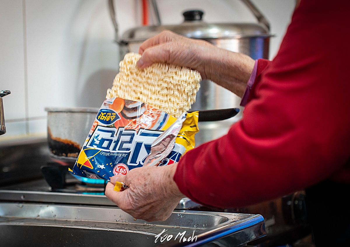 일반 라면에 계란만 반숙으로 해주셨다. 정말 이게 다다. 파가 들어간 것도 아니고, 특별하게 뭐가 더 들어간 것은 아니었다. 그리고 사실 맛도 평범하다. '라면' 그 자체다. TV 에 나온 집이라는 점과, 할머니가 끓여주신다는 점에서 그런 분위기로 맛을 즐기는 것이지, 특별나게 더 맛있었던 것은 아니었다. 국물은 조금 많았던 편.