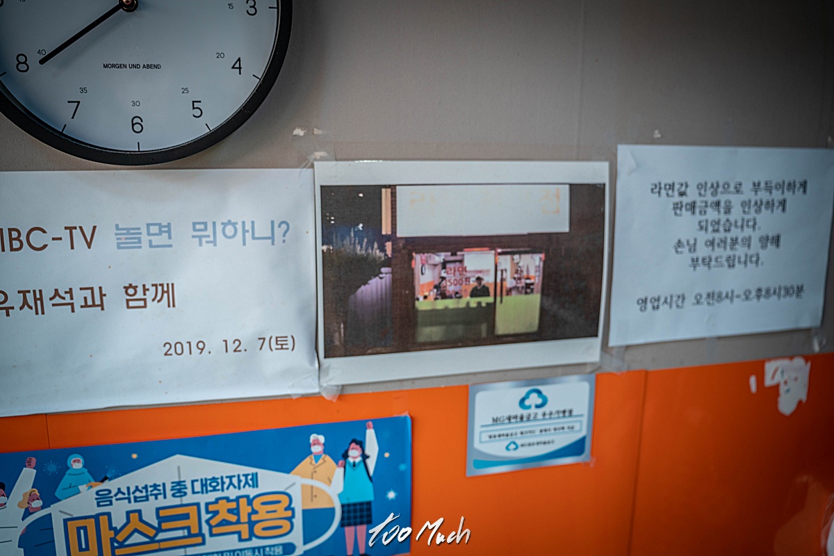들어가보고서야 알았다. 유재석의 유산슬 활동때 여기에 나왔었다고 하는데, 이제 알았다. 그 외에 생방송 '아침이 좋다' 에도 출연을 한적이 있다고 한다. 그래서 뭔가 특별한게 있지 않을까? 하는 기대감으로 라면전문점에 들어가 봤다.