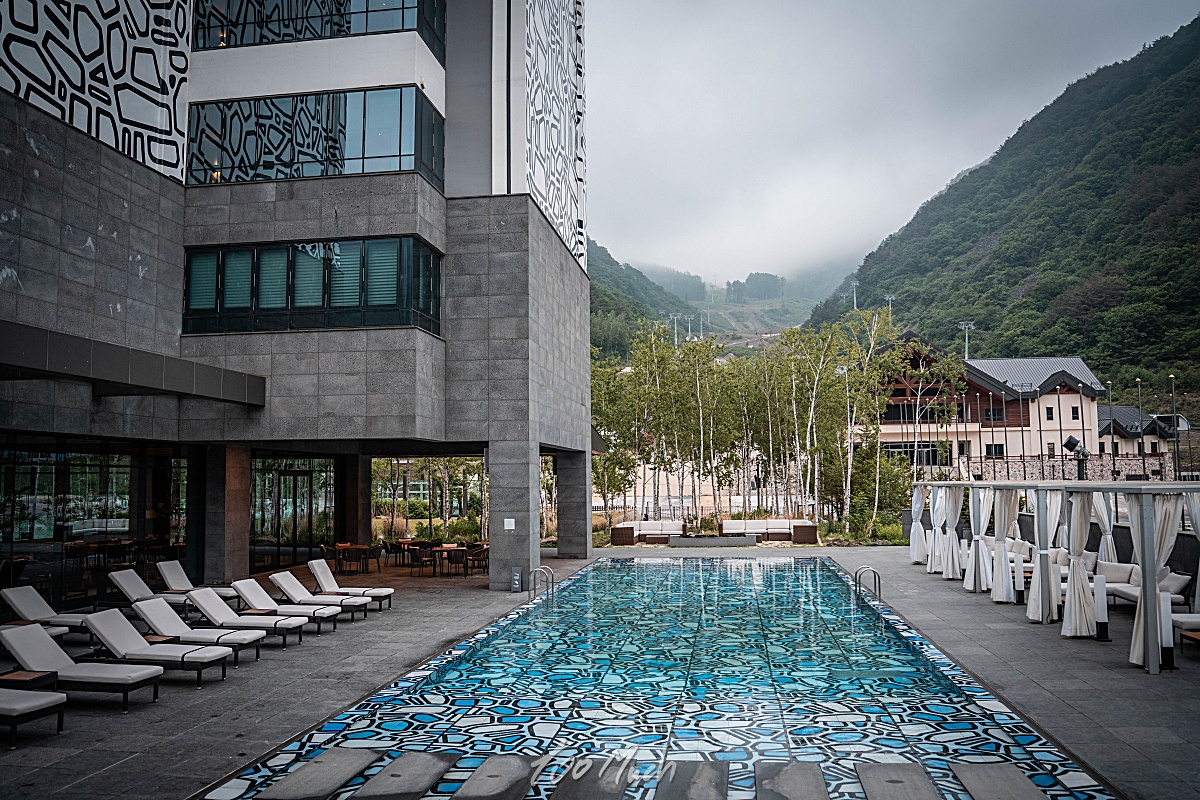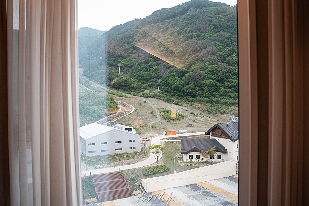 산이 보이는 뷰가 좋다. 겨울에 오면 스키장에 쌓인 눈을 보면서 호캉스를 보내기 좋을 것 같다.