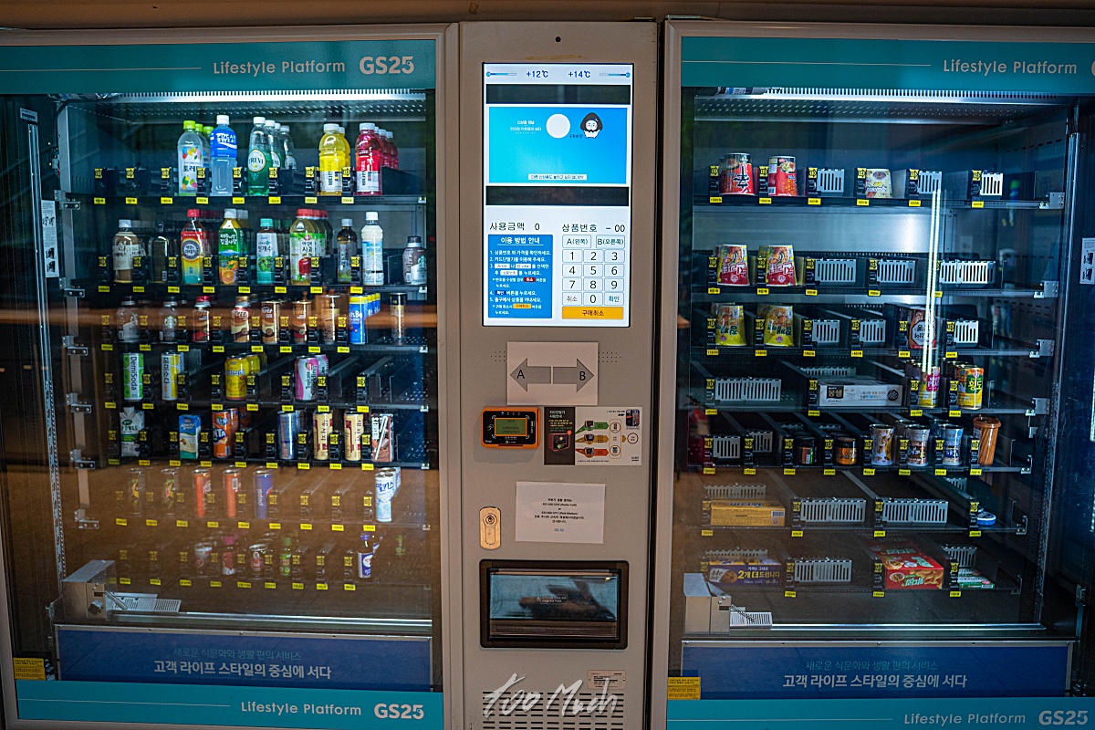 이곳 편의점은 GS25 로, 호텔에서 운영을 하는데, 정해진 시간에만 주류 등을 구입할 수 있고, 그 외에는 이렇게 자판기로 되어 있어서 필요한 것들을 살 수 있다. 간단한 음료나 과자 등은 자판기로 구매가 가능한데, 품목이 다양하지는 않다. 그리고, 가끔 결제 에러가 날 때가 있다. 이중결제가 되는 것은 아니었는데, 물건을 선택하고 결제하려고 하면 갑자기 초기 화면으로 바뀌는 등, OS 문제가 조금 짜증나는 편이다.