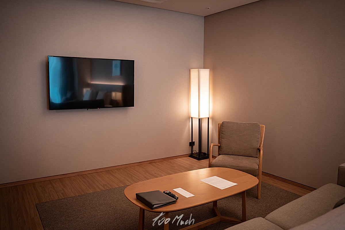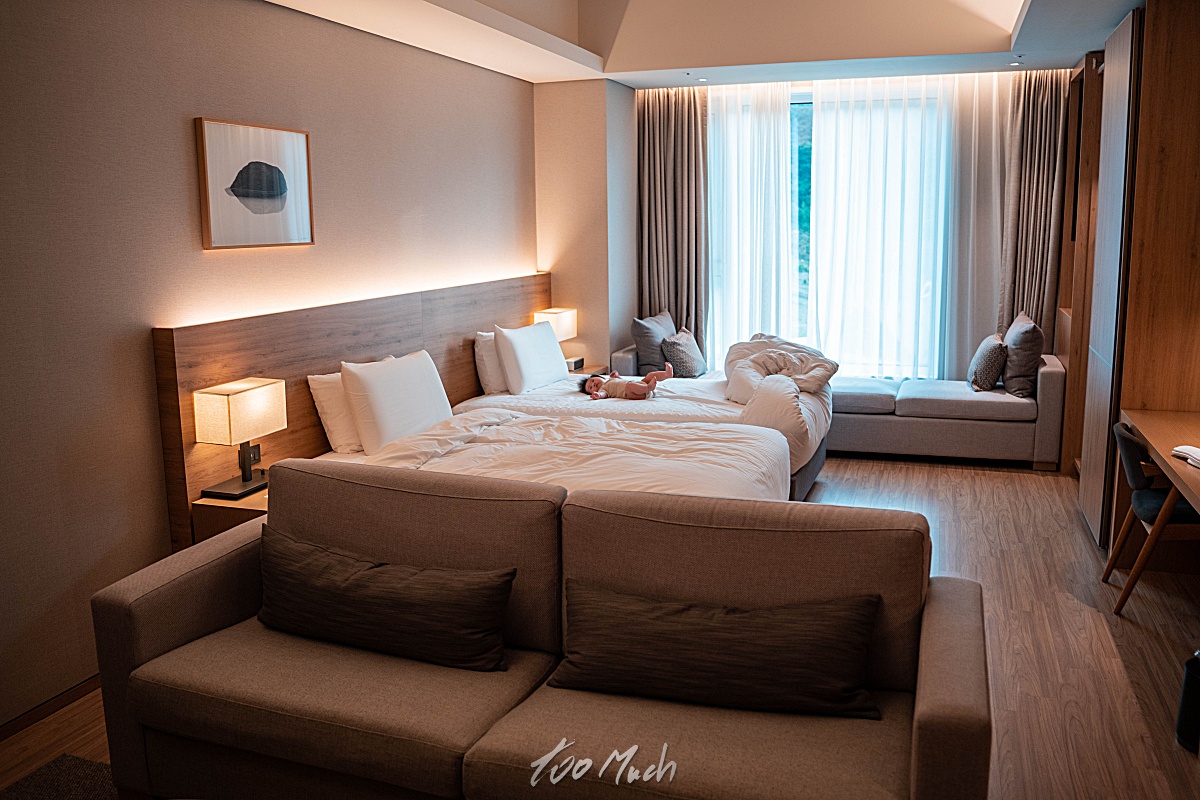체크인을 하고 들어간 곳은 파크로쉬 숙암 트윈 스위트로 트윈베드가 있고, 산이 보이는 뷰로, 꽤 괜찮았다. 침대는 푹신하고, 침대 옆으로는 소파와 함께 TV 가 있어서 편하고 여유롭게 TV 시청을 하기 괜찮다. 그런데, TV 사용방법이 조금 불편하다. 외부입력버튼을 여러번 눌러봐야 한다.