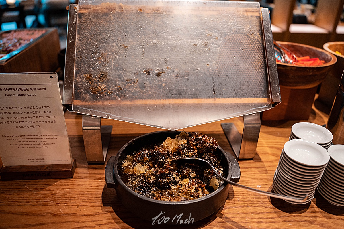 그리고, 독특하게 숙암 벌꿀이라고 해서, 벌집 통째로 꿀을 갖다놨는데, 이건 별도로 판매하기도 한다. 참고로, 요거트나 빵에 꿀을 넣고, 발라 먹거나 하면 더 맛있다. 꿀이 꽤 꾸덕꾸덕해서 발라먹는 재미가 있다.