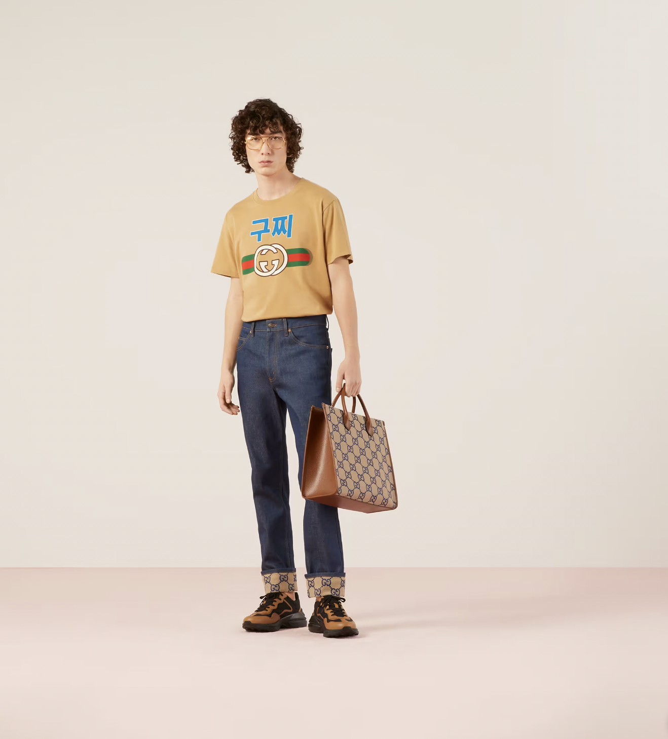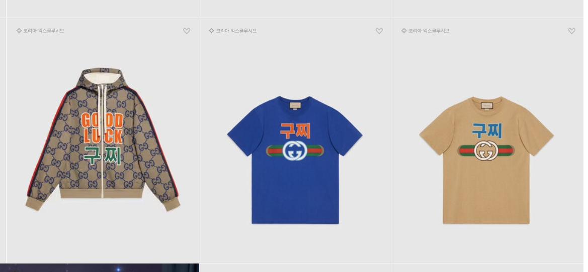 왠지 모르게 동묘에서 영감을 받았을 것 같은 구찌의 한글 신상옷은 왠지 모르게 충격적이다. 그동안 '아구찜' 등 같은 짝퉁들이 이미 널리 퍼졌었기에 한글로 만들어진 구찌 신상 옷이 너무나 어색하게 느껴진다. 구찌가 한국에 독점적으로 내놓은 이 신상품은 외국인의 눈에 보기에는 괜찮을 것 같지만, 한국 사람이 보기에는 이상하게 짝퉁같아 보인다.