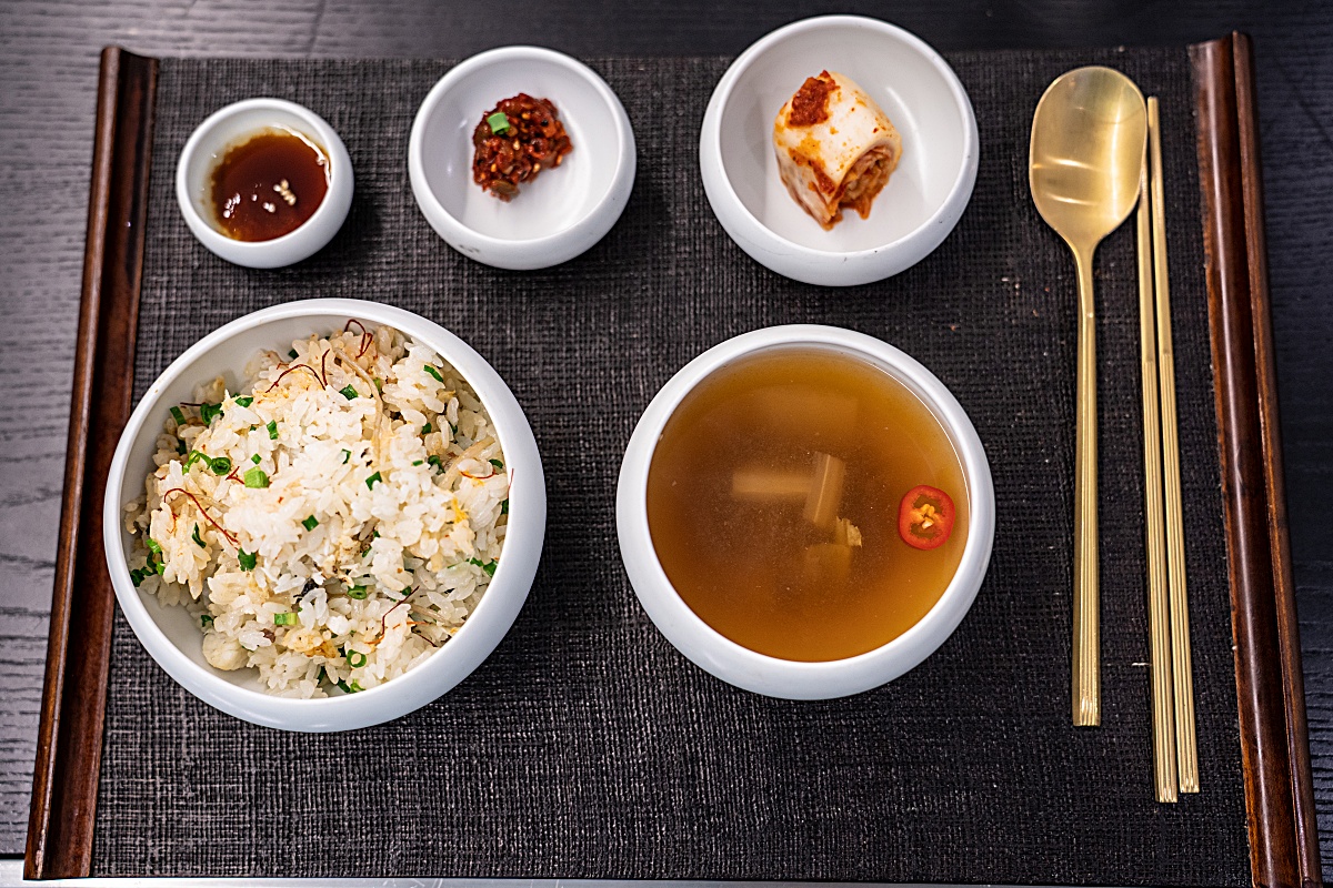 배추 된장국과 간장, 5가지 오곡이 들어간 오징어젓갈과 김치. 소박하지만, 이렇게 즐기는 맛 또한 꽤 좋다. 밥에는 참돔의 살이 들어가 있어서 밥에 간장으로 양념을 해서 먹기만 해도 충분히 맛있긴 하다.