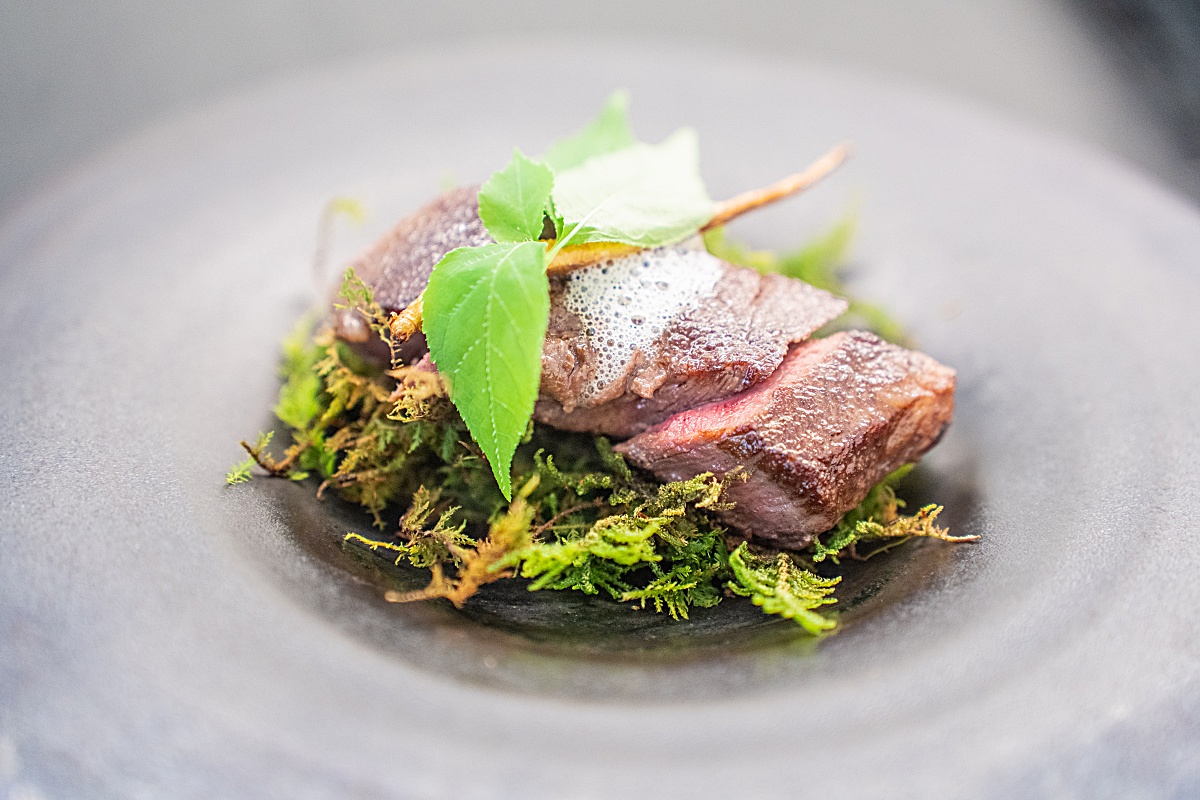 그리고 등장한 한우 안심구이! 영주의 특산품인 사과소스를 거품으로 만들어 올리고, 인삼까지 올려 맛을 더했다. 그리고, 이 독특한 연기와 함께해서 독특한 향미를 즐길 수 있게 해주는데, 안심은 미디움 레어로 나오고, 부드러우면서도 감칠맛이 좋아 와인과 즐기기에도 정말 딱이었다.