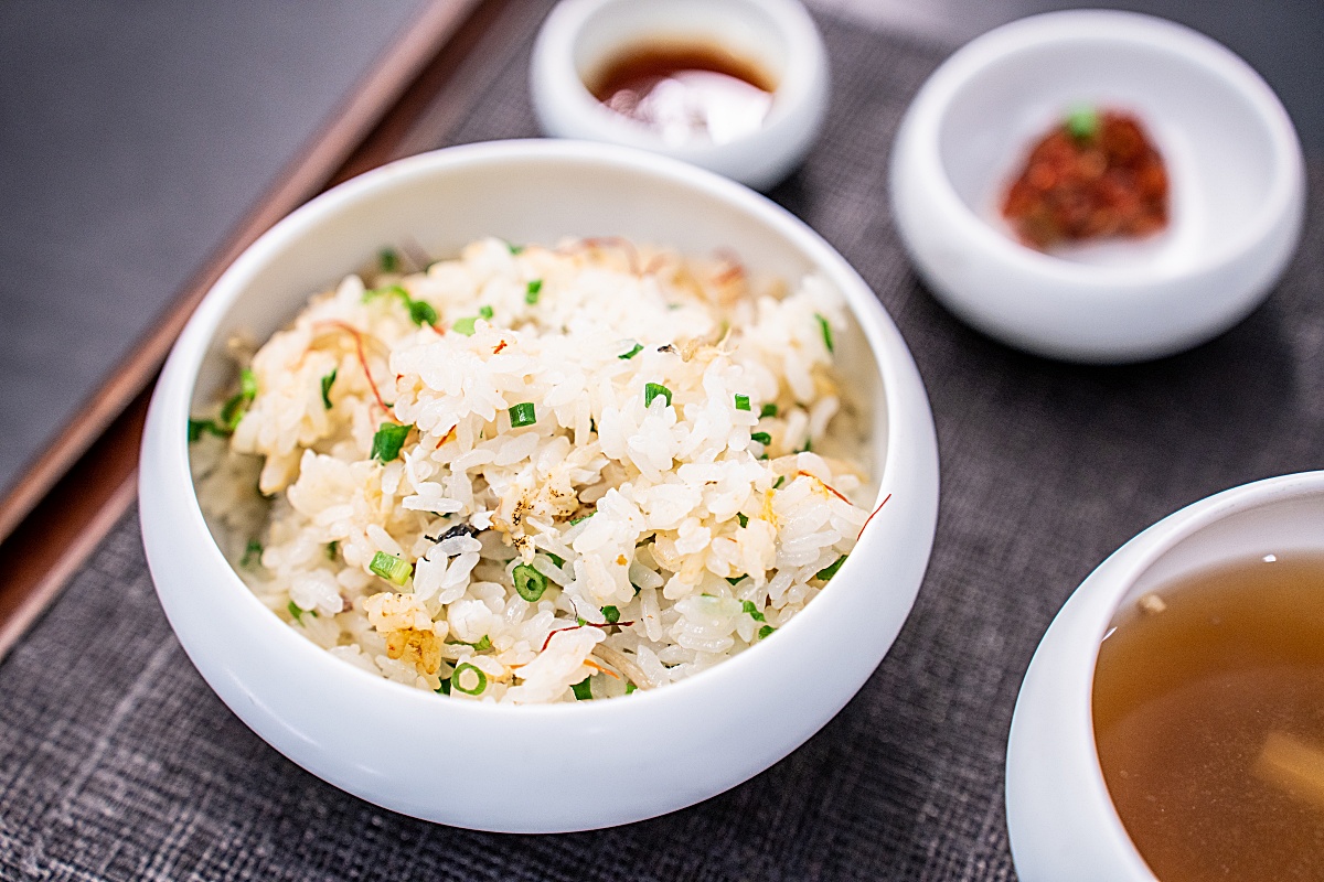 이어서 참돔과 함께하는 솥밥! 솥밥 위에 참돔이 올려져 있고, 잘게 썬 쪽파가 비쥬얼 좋게 올려져 있다. 이제 솥밥을 구경하고 나면, 참돔의 살만 발라내어 섞어내 밥을 담아주는데, 눈으로부터 즐기는 이 즐거움이 참 좋다.