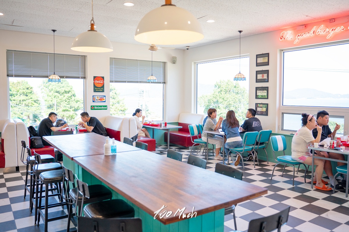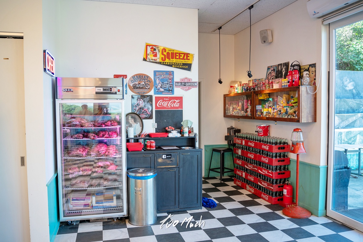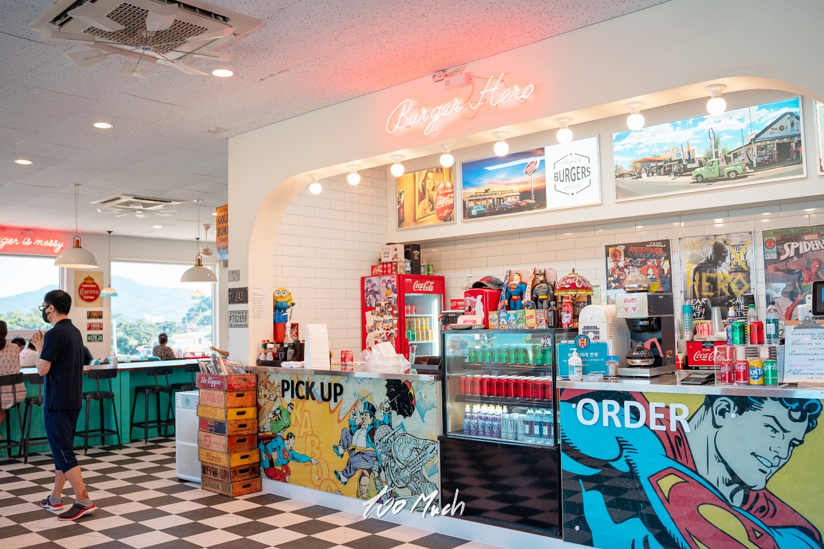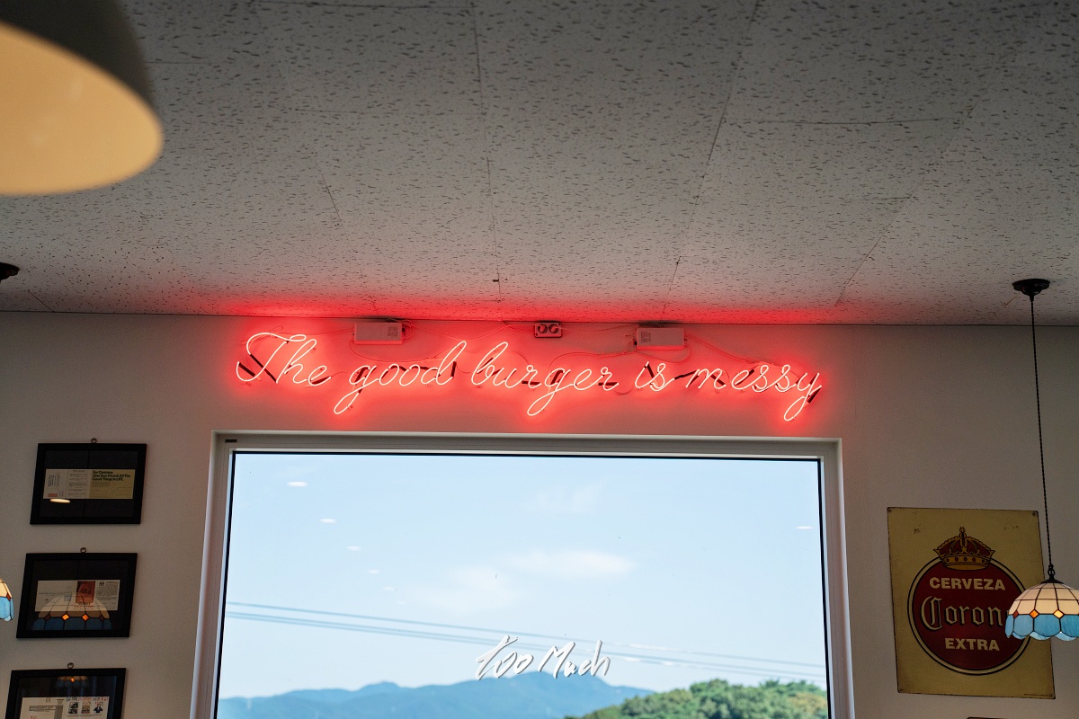 실내는 미국에서 볼법한 것들로 꾸며놓았다. 네온사인이 있고, 코카콜라와 다른 소품들이 미국에서 햄버거를 먹는 듯한 느낌을 준다. 음식맛은 식당의 분위기도 한몫한다.