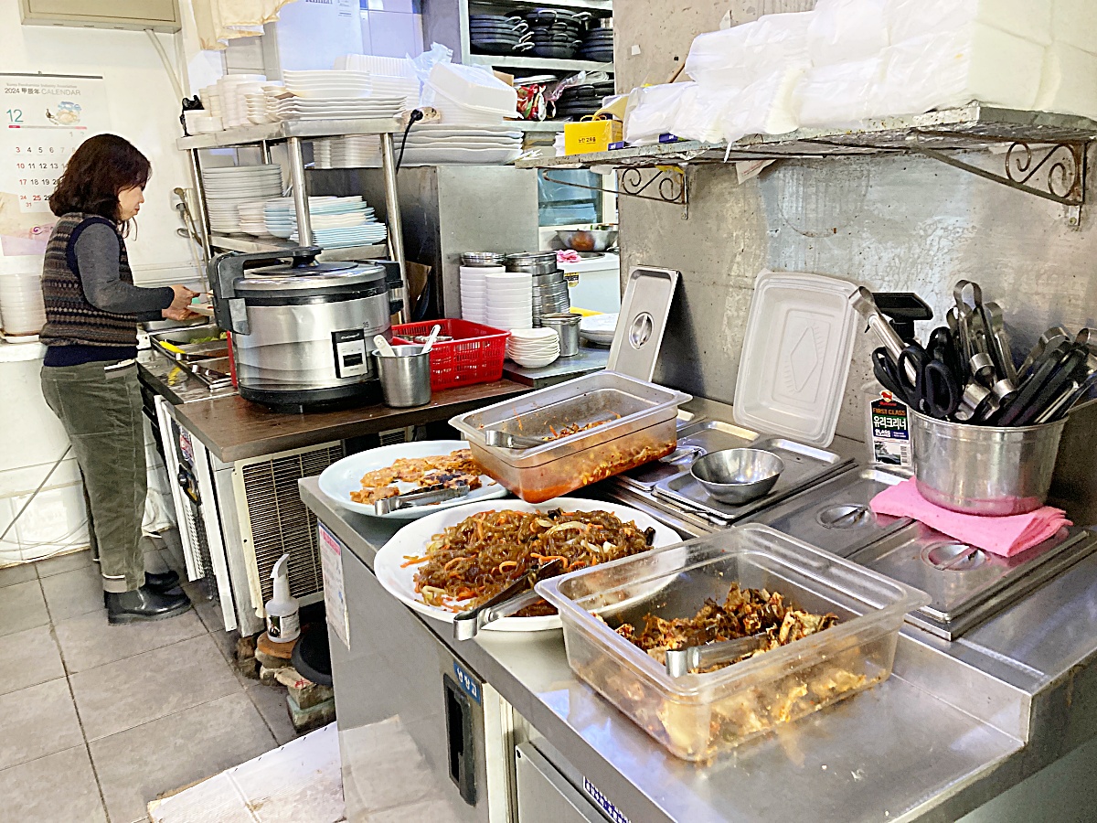 식당 내부는 넓진 않지만, 이곳에서 오래 거주한 찐 로컬이 추천해준 맛집이라는 느낌이 팍 들도록, 점심시간 웨이팅이 좀 있었다. 반찬은 셀프바로 운영되고 있는데, 먹을만큼만 담아야 한다. 남기면 벌금 3천원을 받는다. 그리고, 11 : 30~오후 3시까지 '점심특선' 을 먹을 먹을 수 있는데, 바로 이 점심특선을 먹기 위해 와이프와 함께 다녀왔다. 점심특선은 '명태조림정식' 으로 2인 이상 주문 할 수 있으며, 가격은 11,000 원이다.