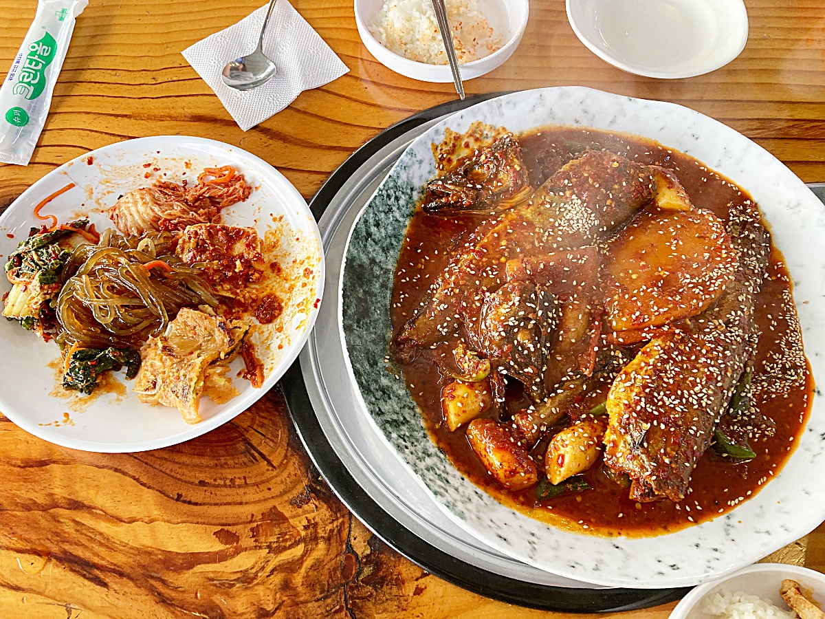 매콤하면서 달콤한 명태조림은 부드럽게 잘 익은 무가 양념이 잘 배어 있고, 명태는 말린 것을 사용해 쫄깃함이 배가 된다. 뼈를 발라내기도 쉬운 편인데, 속살까지 양념이 잘 배어 있고, 양념이 맛있어 밥을 비벼먹기만 해도 정말 맛있다. 한사람당 한마리씩 나오기 때문에 양도 넉넉하다. 가격까지 생각하면 정말 혜자스러운 로컬 맛집이다. 또 가야지.