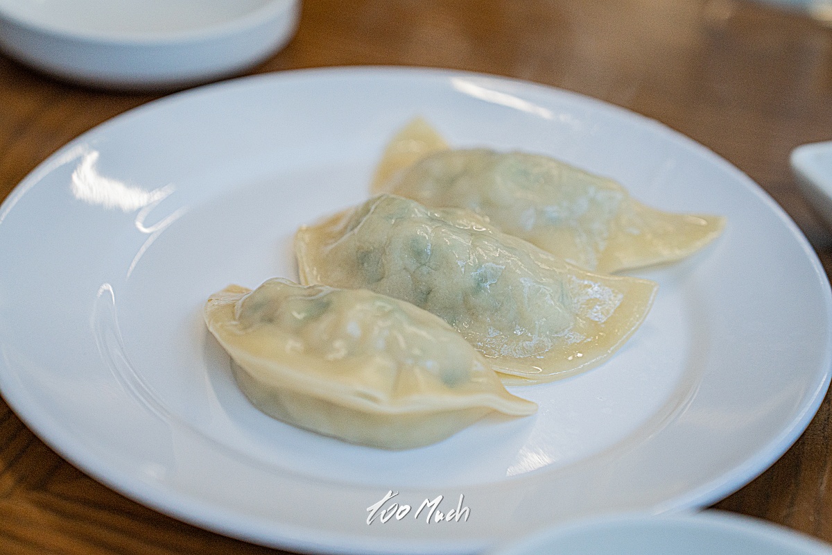 그리고, 만두 반접시를 주문하면 이렇게 만두 3개가 나온다. 그런데 약간 급하게 만든 것 같다. 만두피 끝이 약간 딱딱했는데, 찌는 타이밍을 좀 짧게 준 것 같은 느낌이었다. 만두소는 상당히 맛있었지만, 역시나 양은 아쉽고 제대로 쪄내서 오지 않아 완성의 디테일이 떨어졌다. 그래서 만두와 냉제육에서 감점이다.