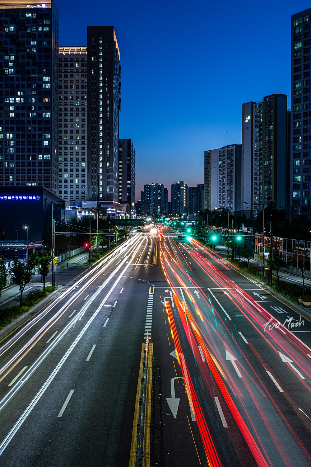 조리개를 조이고 야간 도로 위 궤적을 찍는 것도 좋다. 특히, 빛 갈라짐도 깔끔하고 예쁘며, 건물들의 왜곡 역시 거의 없다시피 한 35mm 의 화각이라 좋다. 처음 사진을 배울 때, 선배가 나에게 단렌즈로만 사진을 찍어보라고 했었다. 처음에는 50mm 화각으로 이것저것 찍어보게 하더니, 내가 일상을 찍고, 다큐사진을 좋아한다고 했을 때, 35mm 렌즈로만 다녀보라고 했었다. 조금 멀리서 떨어져 볼 줄도 알고, 가까이 다가가서 찍어볼 줄 알게 된 렌즈가 35mm 화각의 렌즈였으며, 50mm 보다도 조금 더 눈에 편하다. 개인적이지만.