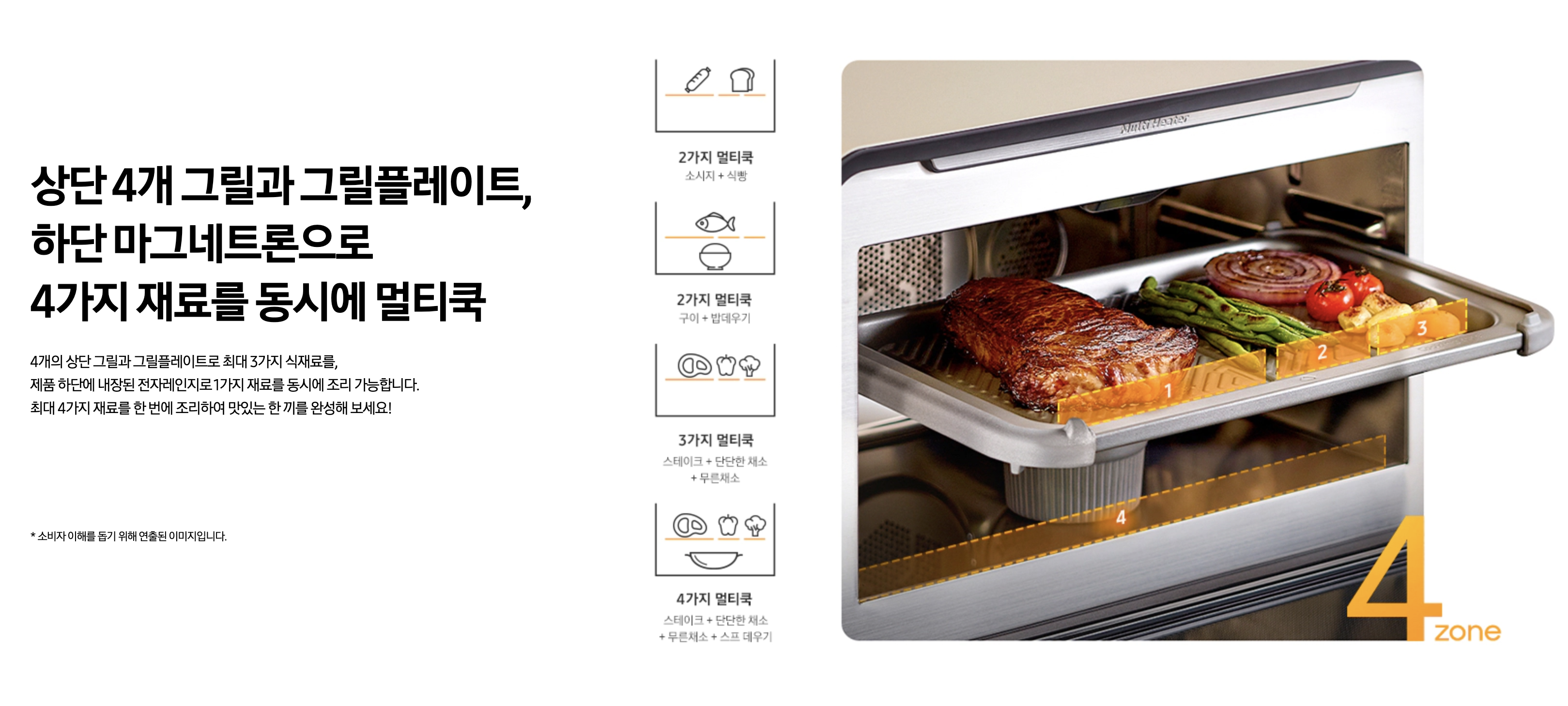 요리를 즐기는 사람이라면, 관심을 가질만한 새로운 키친 솔루션이 나왔다. 삼성 비스포크(BESPOKE) 큐커가 바로 그것인데, 상단 4개의 그릴과 그릴 플레이트, 하단의 마그네트론으로 4가지 재료를 동시에 요리할 수 있으며, 큐커 하나면 그릴은 물론이고, 에어프라이어와 전자레인지, 토스트 증 다양한 요리가 가능해진다고 한다.