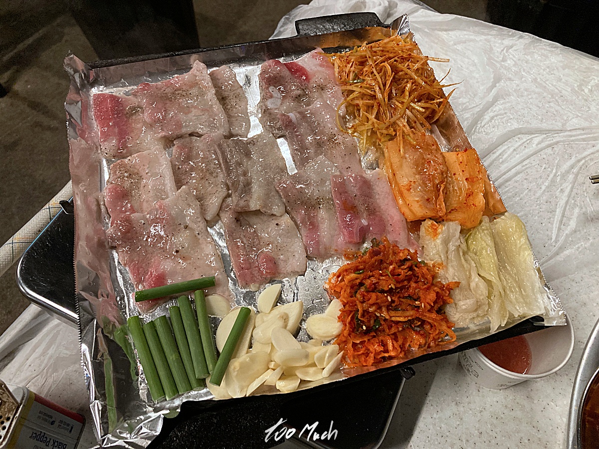 아참, 고기에 후추 뿌린건 정말 신의 한수. 청주에서도 냉동삼겹살집이 유명한데, 거기에서는 맛간장에 푹 담갔다가 고기를 굽고, 구운 파채와 함께 먹는다. 지역마다 다른 맛이 있으니 좋다.