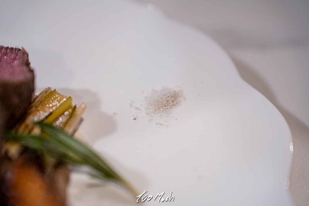 그리고 기다렸던 안심스테이크. 스테이크의 익힘 정도를 따로 묻지 않아서 살짝 걱정했지만, 너무나도 맛있는 미디움 레어로 정말 맛있게 익혀 나왔다. 고기의 질도 상당히 좋은 편으로, 호주산을 사용하고 있었으며, 너무나도 부드럽게 썰리고 씹힌다. 소스는 계절마다 조금씩 바뀌는 것 같다. 이번에는 블루치즈 버섯퓌레가 나왔고, 스테이크와 함께 훈연파와 표고버섯이 나왔고, 트러플 소금이 함께 곁들어져 있는데 그 맛이 기가 막히다.