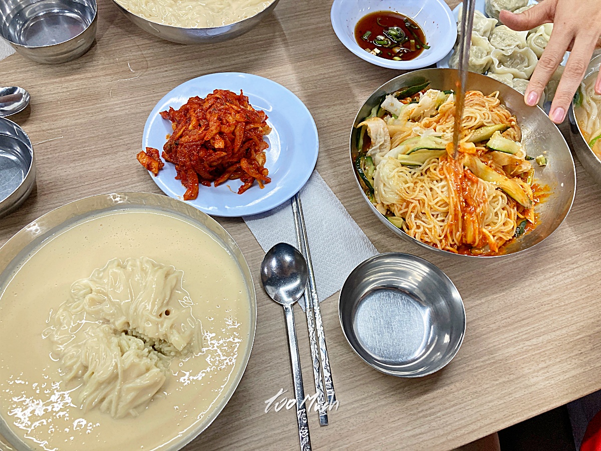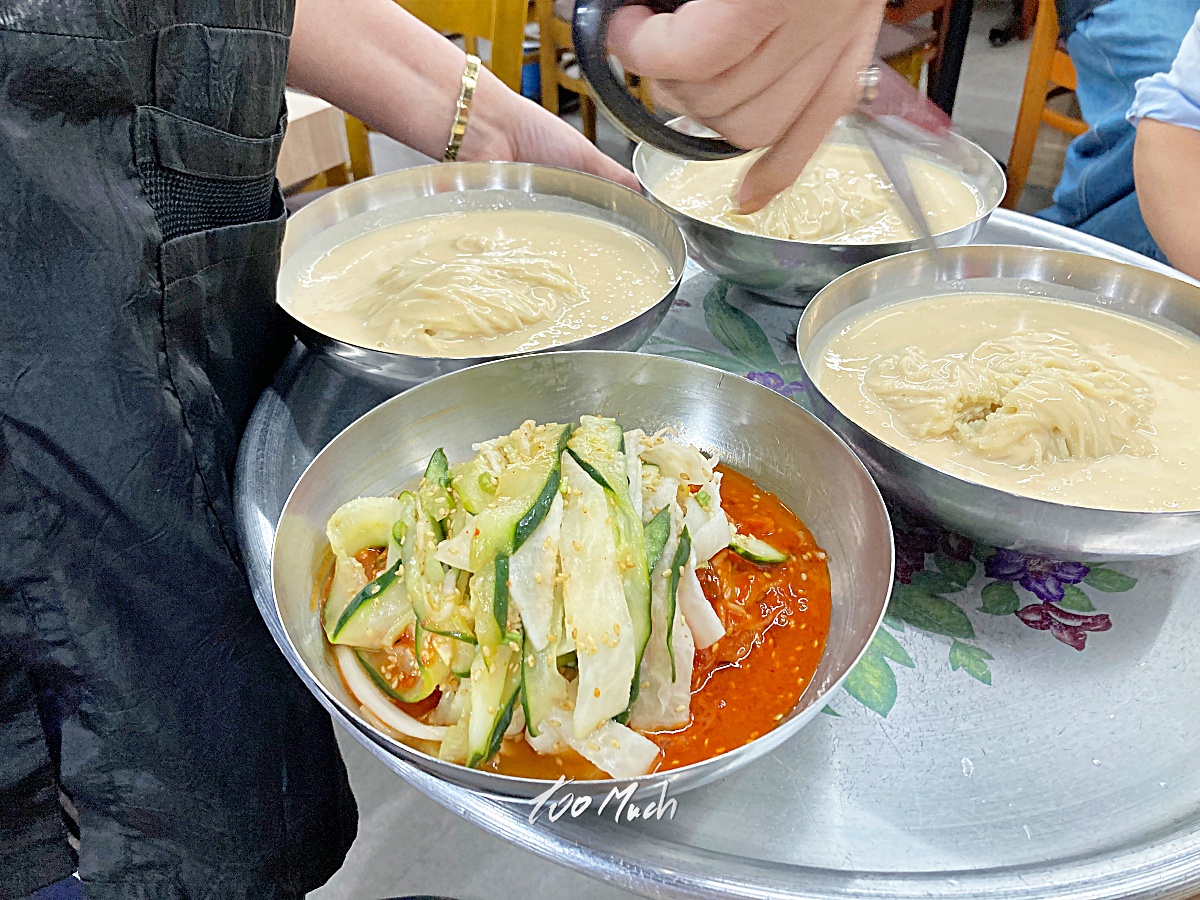 메뉴는 닭칼국수와 비빔국수, 냉콩국수, 접시만두 4가지이며, 미리 말해두지만 모두 맛있다. 친구들과 함께 가서 되는대로 다 시켜먹는게 좋다는 것을 추천하며, 지하 1층에 복도 양옆을 끼고 넓은 공간에서 영업 중이지만, 인기가 많아서 조금 늦게 가면 줄을 서서 기다려야 한다. 참고로 다 먹고 나오는데 벌써 줄이 길게 서있어서 놀랐다. (오픈 전부터 줄이 있었다)