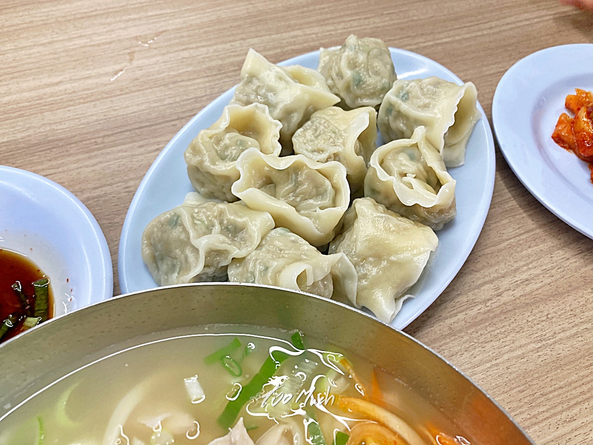먹는것에 진심이라 냉콩국수와 비빔국수, 닭칼국수, 만두를 모두 다 시켰다. 비쥬얼부터 상당한데, 만두는 예상보다 많은 편이어서 다행이었다. 닭칼국수 역시 맛있는 육수와 함께 계속 입으로 들어간다.