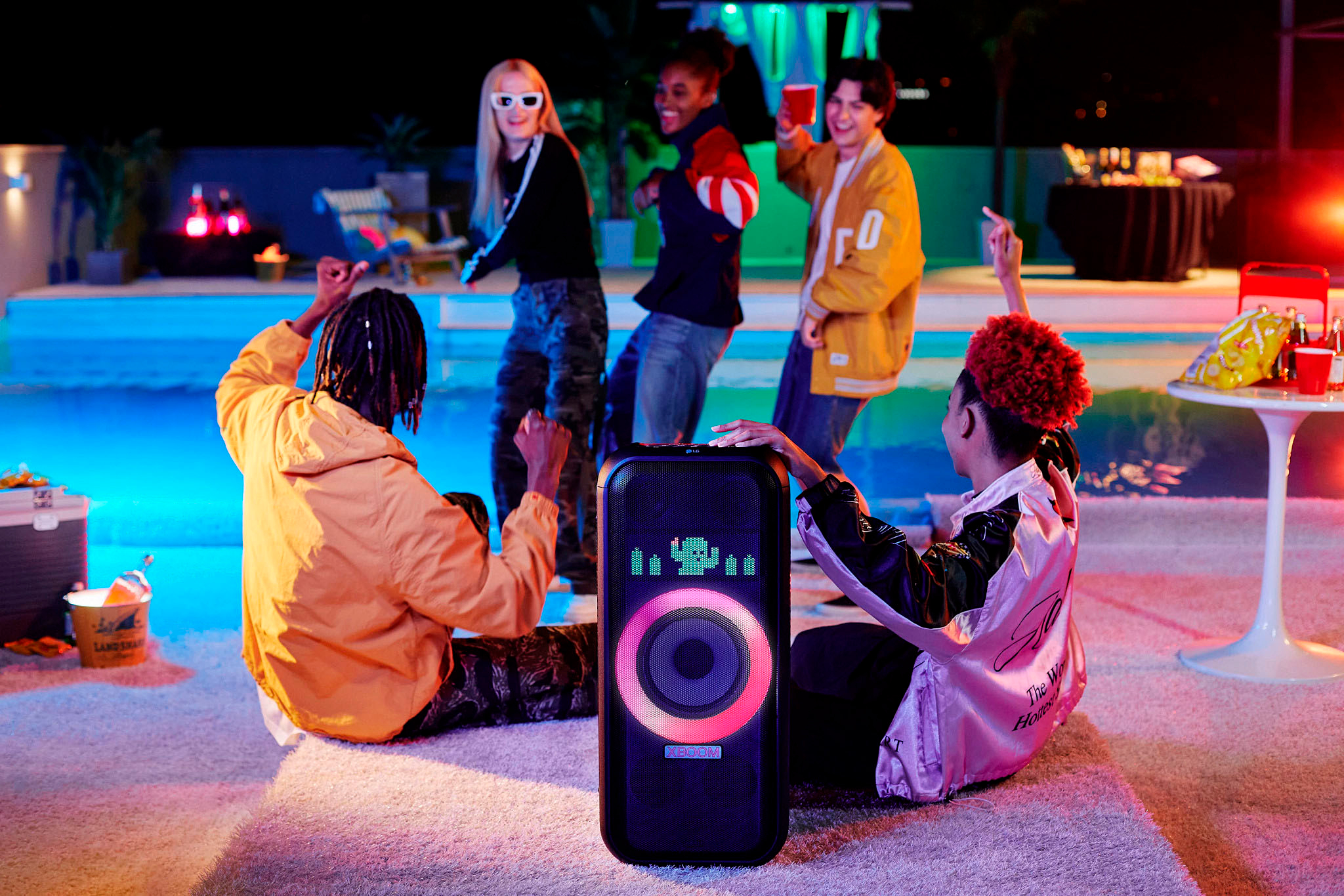 LG 엑스붐에는 고음용 트위터 2개와 저음용 8인치 대형 우퍼 1개. 그리고 2.1 채널에 맞춰 최대 250W 의 강력한 사운드를 내며, 우퍼 조명의 색상이나 점멸 패턴 등을 바꾸고, 픽셀 조명을 통해 영어 텍스트나 캐릭터 애니메이션도 보여줄 수 있어 다양한 부위기 연출이 가능하다. 또한, USB 와 블루투스 모바일 기기로 연결도 가능한데, 각각 200W 급의 XL5S 와 250W 급의 XL7S 두가지 모델을 선택할 수 있다. 가격은 649,000 원이다.